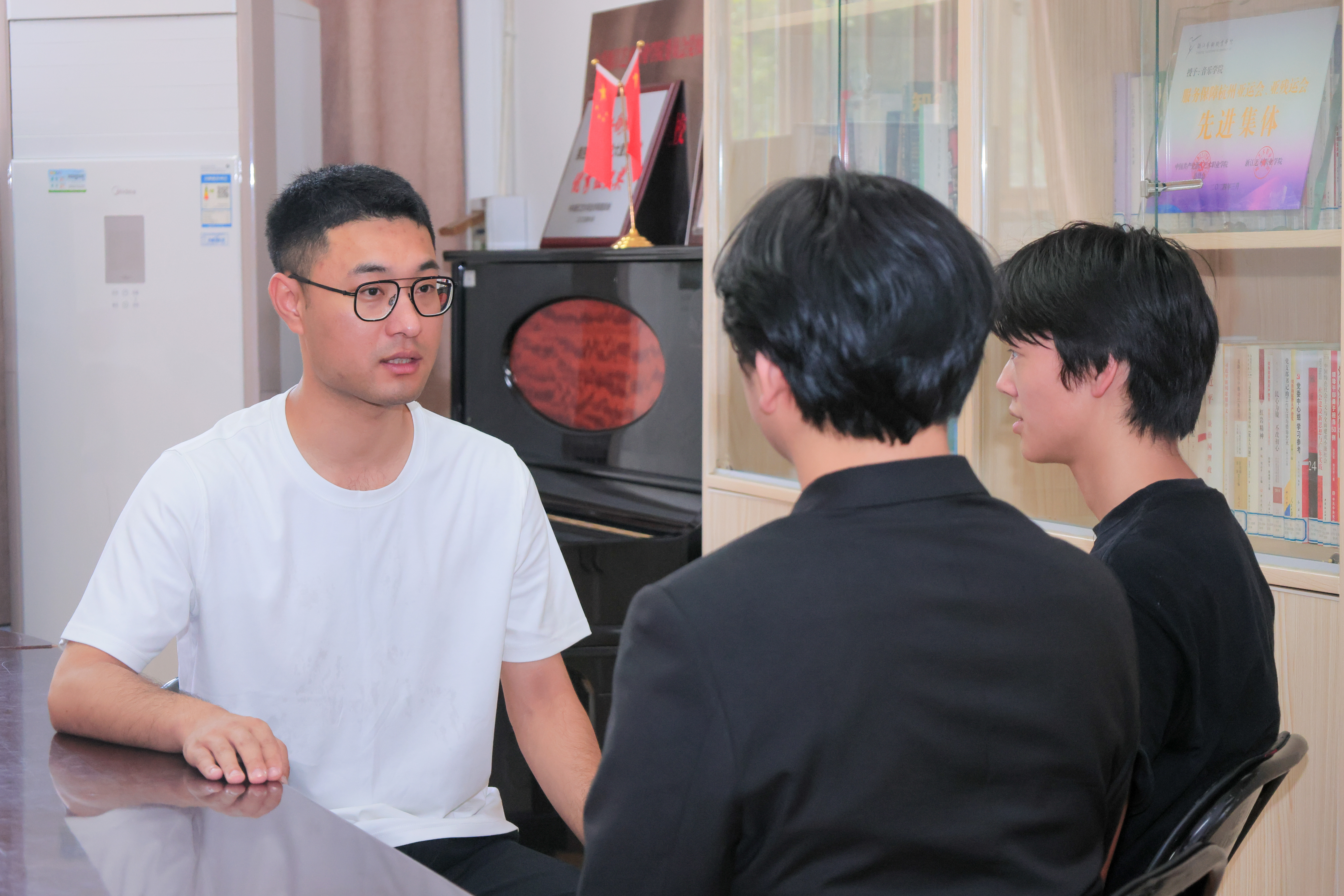 这位学生们心中亲切的“宏哥”,就是圆寸头、戴一副眼镜、着装素净的辅导员陈宏。在同学们看来,陈宏不仅仅是一名老师,更是一位青春引路人。