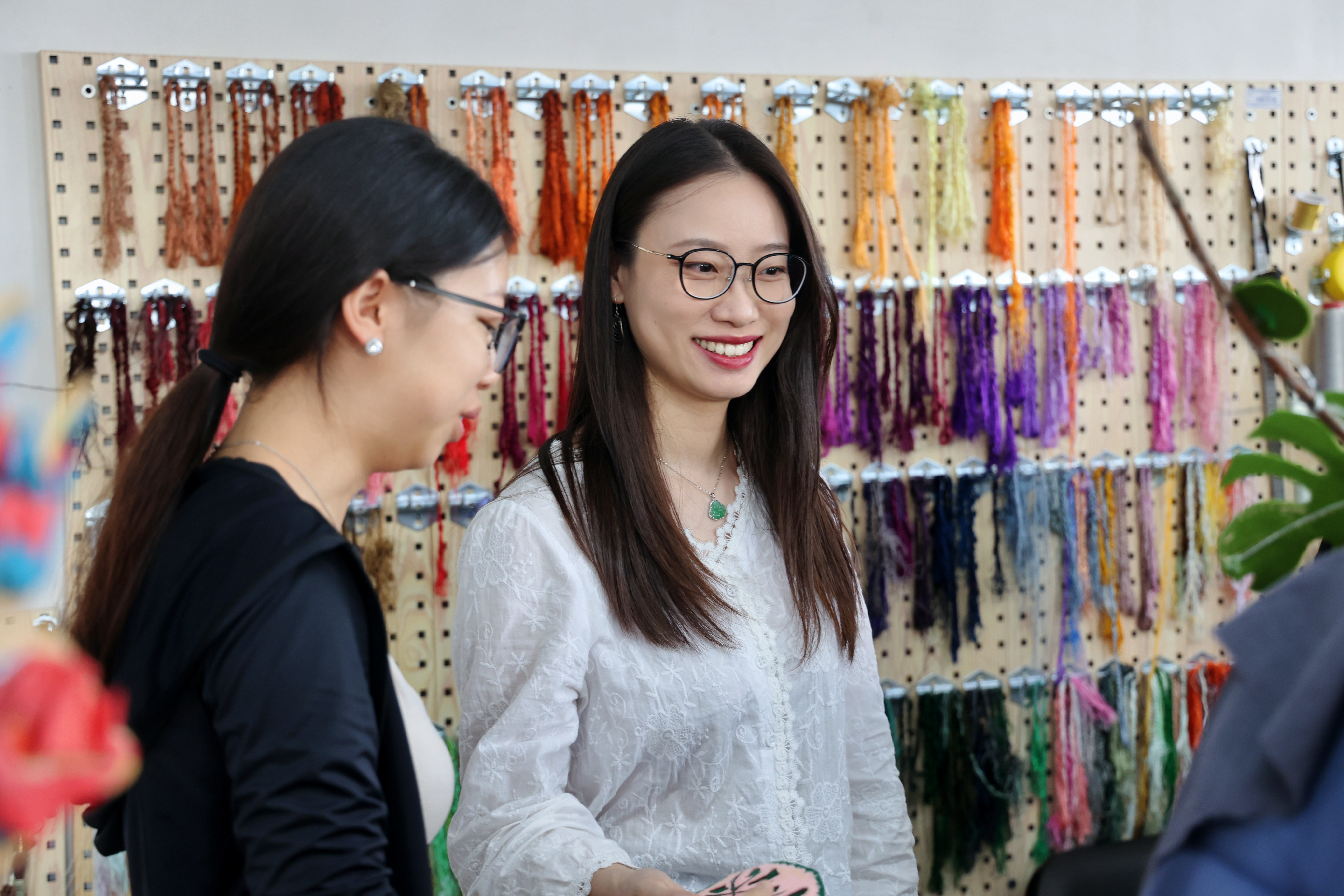她还利用每个假期开展非遗田野调研,向民间艺人、大师和传承人取经问道,然后再将第一手的调研资料传授给学生们。她认为,教学的场域不应该局限在教学楼的课堂里,博物馆、美术馆、传承人工坊、乡村田野、展会市场,都可以成为延展的课堂和教学实践的场所。